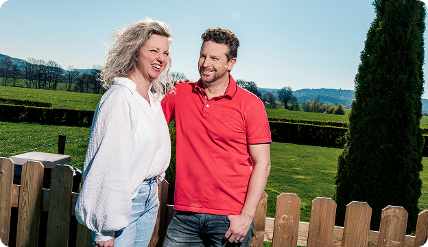 ‘Ik ben geboren en getogen in Noord-Limburg’, begint Karina. ‘Maar voor mijn studie en werk belandde ik in Den Haag. Daar ontmoette ik Peter.’ Peter vult aan: ‘Ik was al verliefd op Limburg voordat ik Karina leerde kennen. Al van kleins af aan ging ik hier met mijn familie naartoe. En ook nu kom ik er nog graag om met mijn vrienden door de heuvels te fietsen. Het is dus niet vreemd dat Karina en ik elke vakantie het liefst naar Limburg gaan. Eigenlijk begonnen we steeds vaker te denken: kunnen we dit vakantiegevoel niet áltijd hebben?’